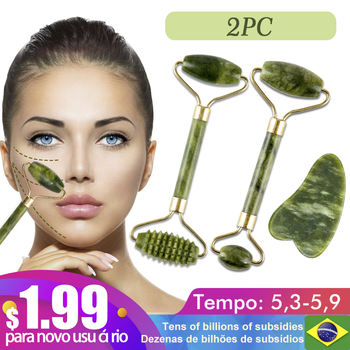 Rodillo masajeador Facial de piedra de Jade Natural, conjunto de rascador de Gua Sha verde, herramientas adelgazantes de belleza, 2 unidades