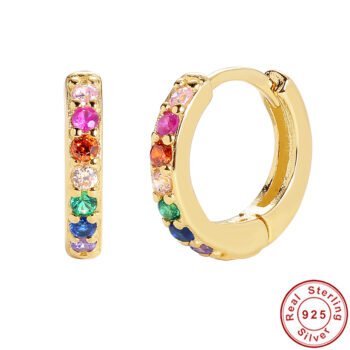 Pendientes de aro de Plata de Ley 925 con Zirconia cúbica chapada en oro de 18K, para mujeres